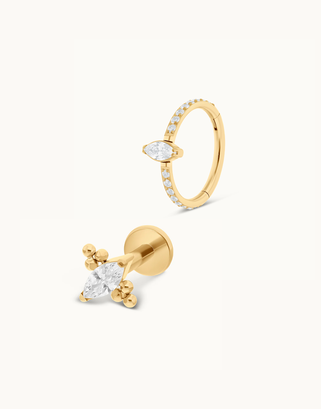 Nous proposons des bijoux en titane ASTM-F136 de qualité implantable et de l'or 14 ou 18 carats, parfaits pour une première pose. Ces matières sont hypoallergéniques, résistantes à la corrosion, sans nickel ! Idéal pour une expérience de piercing optimale.