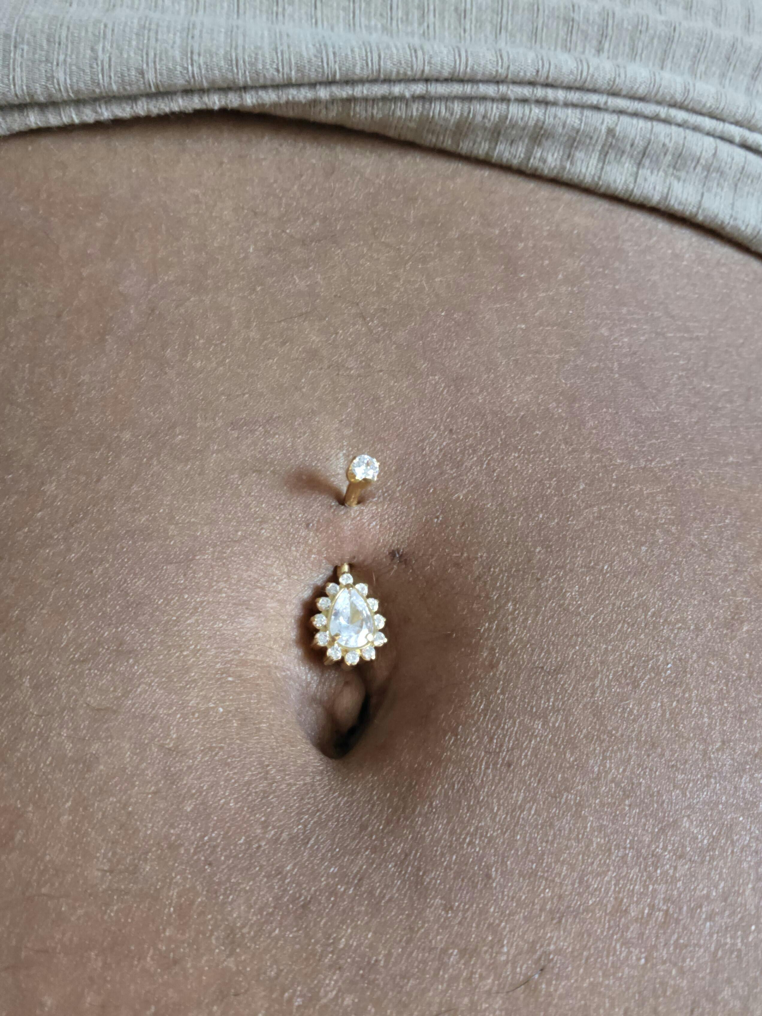 Sucumbe a la belleza de la joya de ombligo "Athena". Un piercing que encarna la elegancia y la fuerza de la misma diosa griega. Brillante y cautivadora, esta joya está diseñada para atraer miradas y hacer que tu vientre resplandezca.