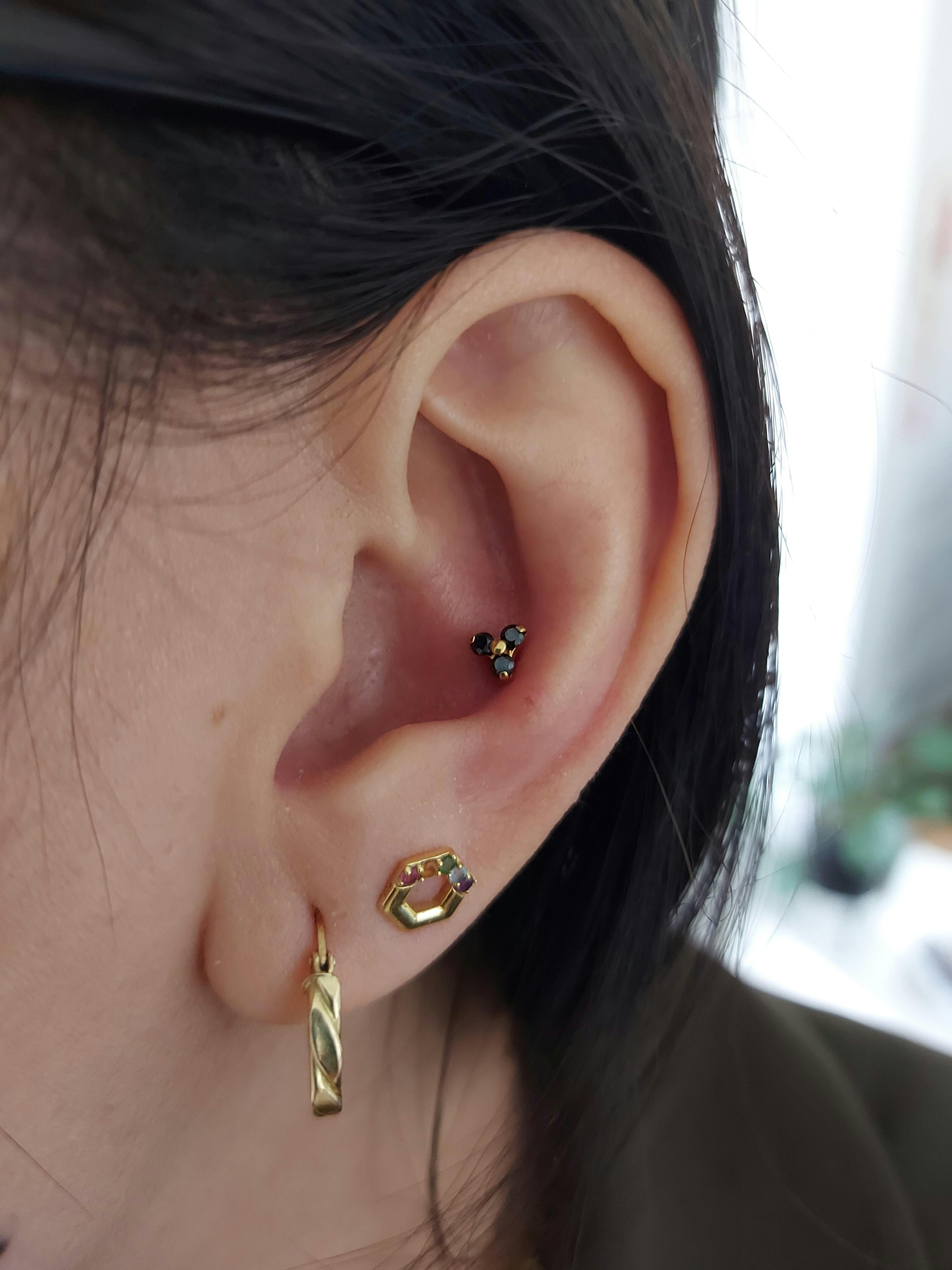 - Il se place idéalement sur l’Hélix, l’Anti Hélix, le Conch, le Lobe ou encore le Tragus